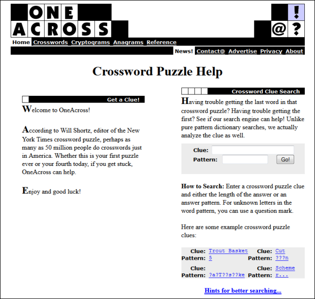Oneacross Com At Wi One Across Search For Crossword Puzzle Answers Solve Crossword