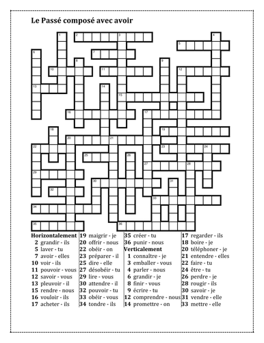 Passe Compose Avec Avoir Crossword 1 Teaching Resources